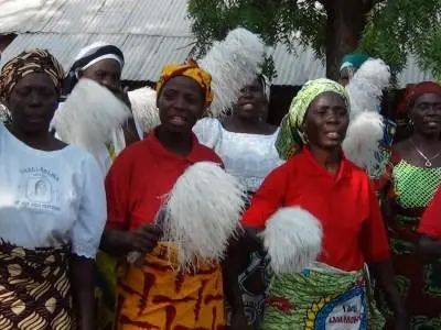 Below is a slide show of Ga'anda traditional instruments, men and women singing and dancing, most important headdress, pot drum and horn pipe.